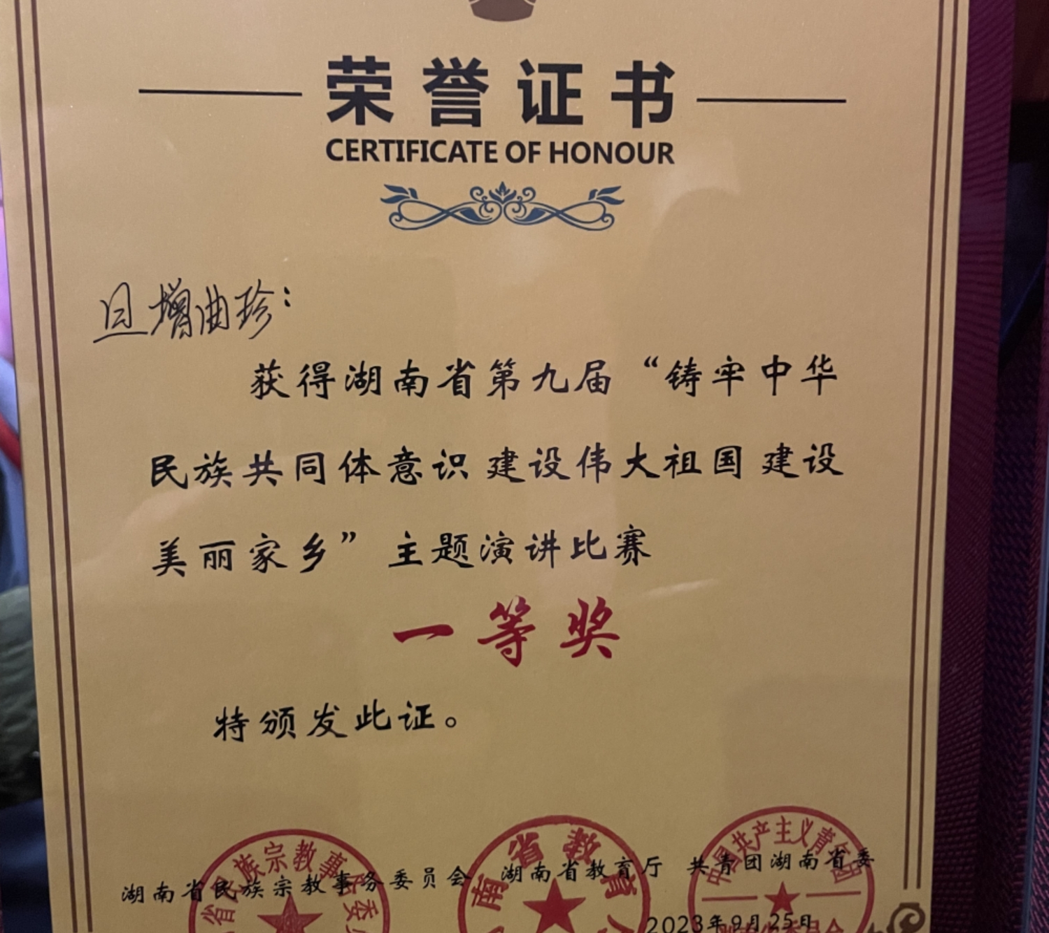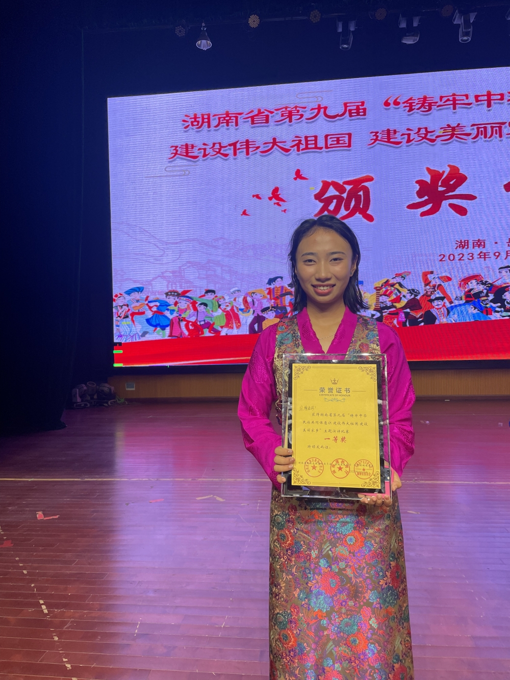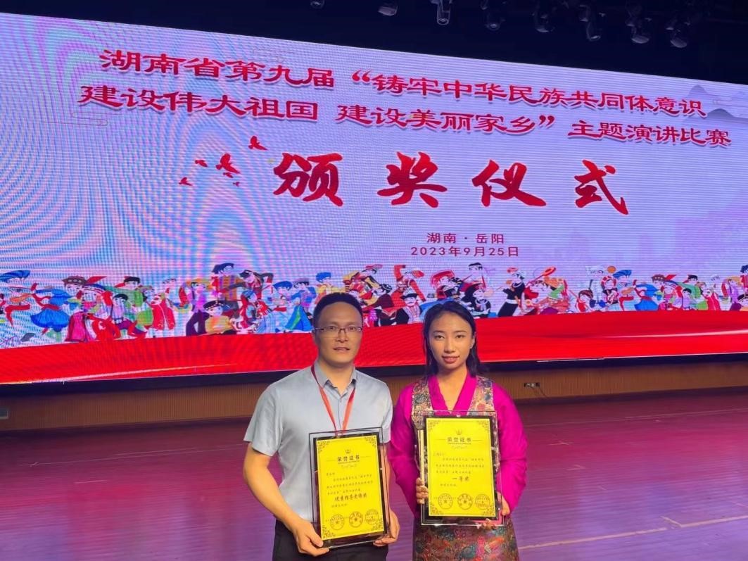 9月25日,由湖南省民宗委、湖南省教育厅、共青团湖南省委联合举办,湖南民族职业公司承办的湖南省第九届“铸牢中华民族共同体意识 建设伟大祖国 建设美丽家乡”主题演讲比赛在岳阳市举行。公司21级894西藏班旦增曲珍同学获得高校组一等奖的优异成绩,李金国获优秀指导老师。
