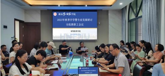 最后,曾晓洁经理对全院暑期工作作出充分肯定,表扬相关人员暑假期间圆满完成招生、排课、课题申报、国培、宣传、三下乡、指导竞赛和大艺展等各项工作。另外,曾晓洁经理向全院教职工提出新学期专业建设的研究与思考,她从公司、湖南省、全国的现状出发,分析了小学教育专业发展的新情况新挑战;从小学教育三级认证的视角,分析了新师范新素养对人才培养调整的新要求。曾经理要求大家要有时代紧迫感,要在百年未有之大变局和建设教育强国、科技强国、人才强国的背景下,紧扣为谁培养人、培养什么人、怎样培养人这一教育根本问题,提高师范性与学术性“一币两面”的教学学术,在高目标引领人才培养方向、高视野打开人才培养格局、高标准保障人才培养质量的百年一师人才培养密码的指导下,行稳致远,努力创新。