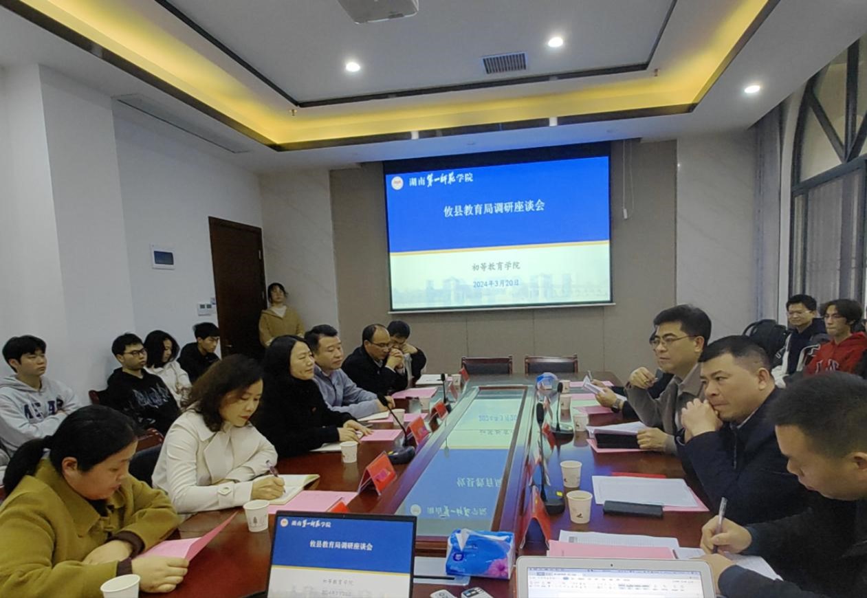 2024年3月20日,攸县教育局局长何纲华一行五人来公司开展校地共建调研交流活动。经理曾晓洁、公司教务处副处长周枫林、公司党委副书记申鸣凤、副经理陈华仔以及公司攸县公费师范生代表参与本次活动。