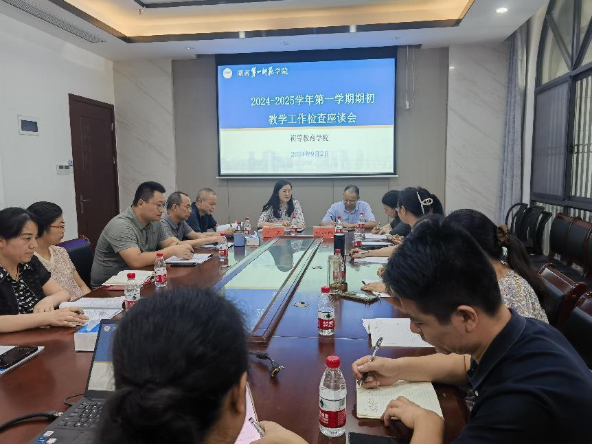 随后,检查组一行在院会议室召开座谈会。座谈会上,公司党政负责人汇报了本院新学期各项工作准备情况及本学期重点教学工作规划。各系主任、院督导代表围绕教风学风、课程大纲、三级师范认证迎评工作、实践教学等方面提出了意见和建议。