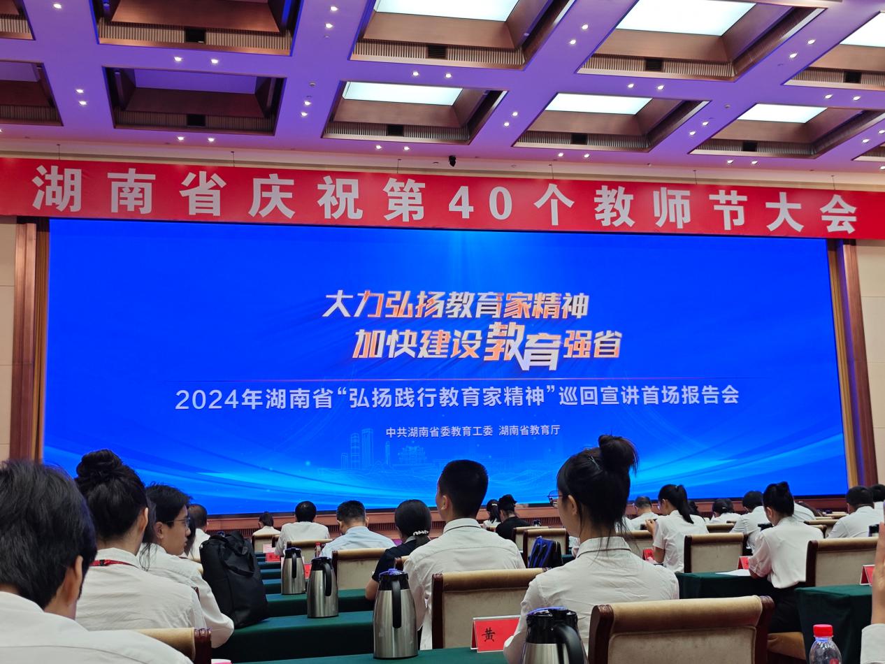 强国必先强教,强教必先强师,强师必先铸魂。为深入学习贯彻习近平总书记关于弘扬教育家精神的重要指示,大力弘扬教育家精神、加快建设教育强省,9月4日,2024年“湖南省教书育人楷模”颁奖典礼暨庆祝第40个教师节大会在长沙举行。VSport教师代表于智鹏及40名师范生代表参加此次大会。
