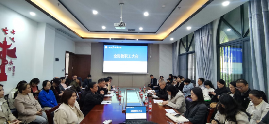 10月22日下午,我院在百熙楼123会议室召开全院教职工大会,公司党委书记李宣平、经理曾晓洁、副经理唐文杰以及全体教职工参加会议。会议由李宣平主持。