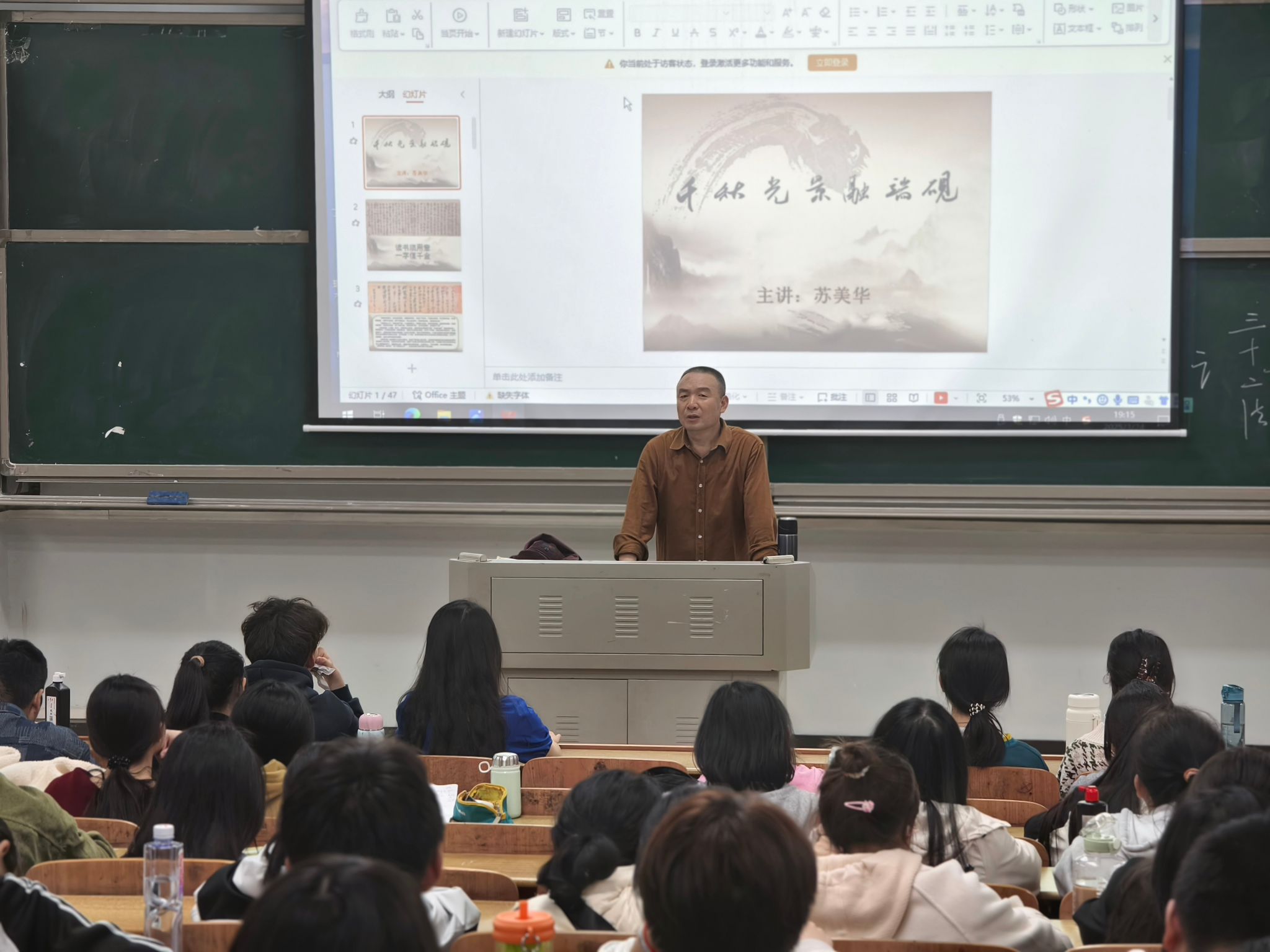 3 月 24 日晚,公司首次师范生书法评鉴能力培训活动在怀中楼(南)208教室举行。本次培训以“三笔字中的毛笔书写”为主题,特邀湖南省书法家协会知名教授、公司关工委委员苏美华教授担任主讲,吸引了百余名师范生参与。集团关工委副主任何文出席活动。活动由公司学工办副主任曾志远主持。